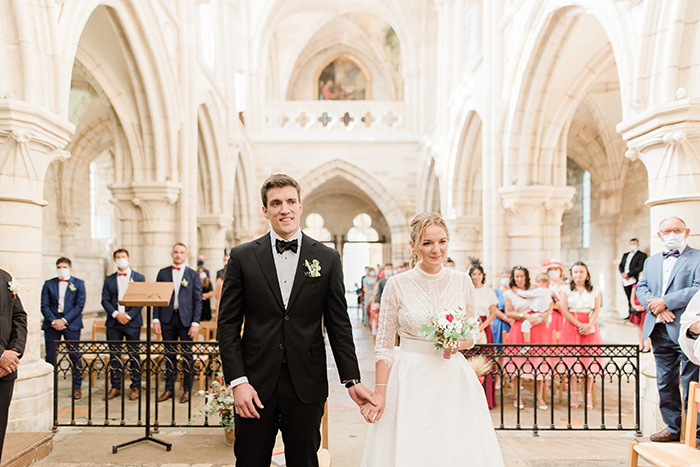 « Ce fût un long parcours du combattant ! Au départ, nous avions prévu de nous marier dans le sud de la France, dans un mas provençal. Mais à suite du décès de mon père (et du Covid), nous avons dû revoir plusieurs fois nos plans. À chaque fois que l’on pensait avoir enfin trouvé une date et une salle, il y avait un nouveau rebondissement, et il fallait tout revoir. Ça nous a pris beaucoup de temps et d’énergie car nous travaillions tous les deux et qu’il fallait tout organiser le soir en rentrant. On a voulu faire beaucoup de choses nous-mêmes : petits cadeaux pour les invités, détails de décoration, carterie etc… Même si on y a passé plusieurs nuits, c’était la partie la plus sympa. »