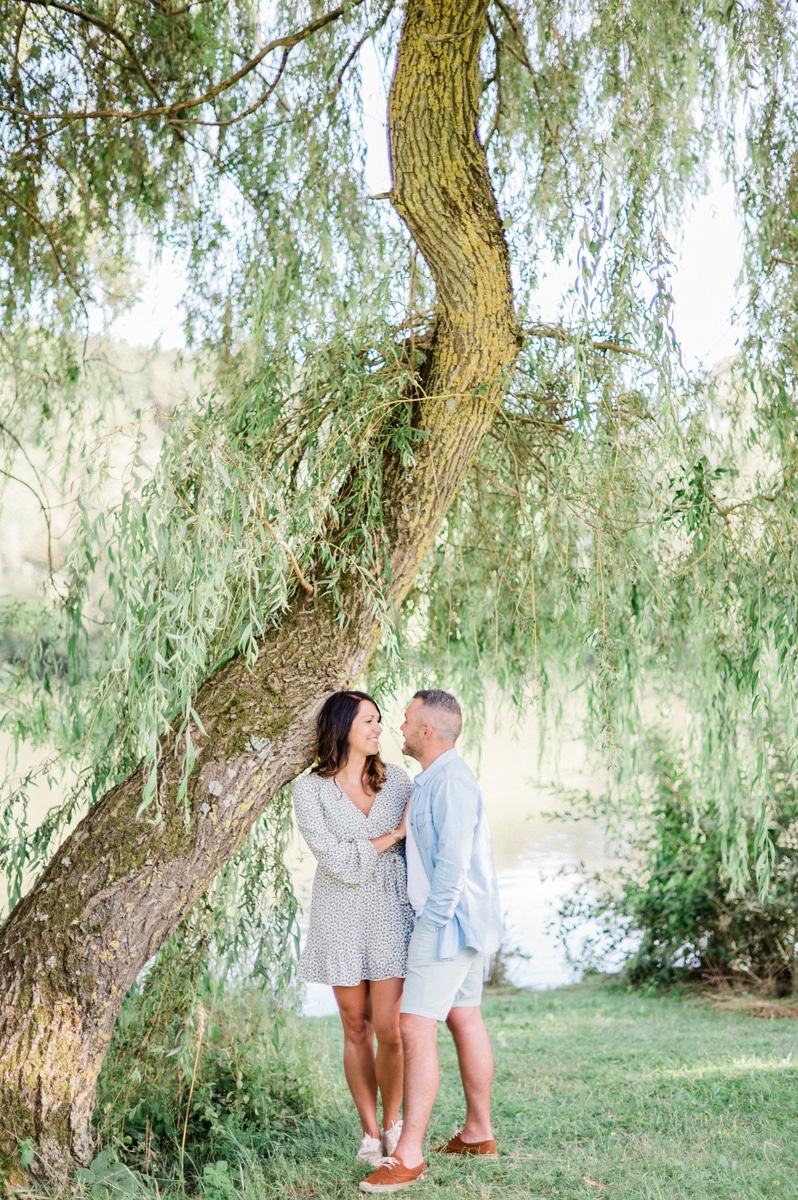Le début de séance s’est tout de suite déroulé dans la simplicité et la bonne humeur qui sont visiblement des traits de personnalité communs à Harmonie et Arthur ! J’ai tout de suite senti l’excitation mêlée à la fébrilité de nos deux tourtereaux qui vivaient leur tout premier photo shooting de couple. Le lieu intimiste avait cependant été choisi en conséquence : un bord de l’eau tranquille offrant des prises de vues profitant d’une belle lumière naturelle.